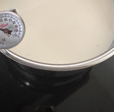 Die Milch in eine große Schüssel leeren und auf etwa 30 °C anwärmen